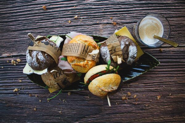 Rijkelijk belegde vers afgebakken broodjes