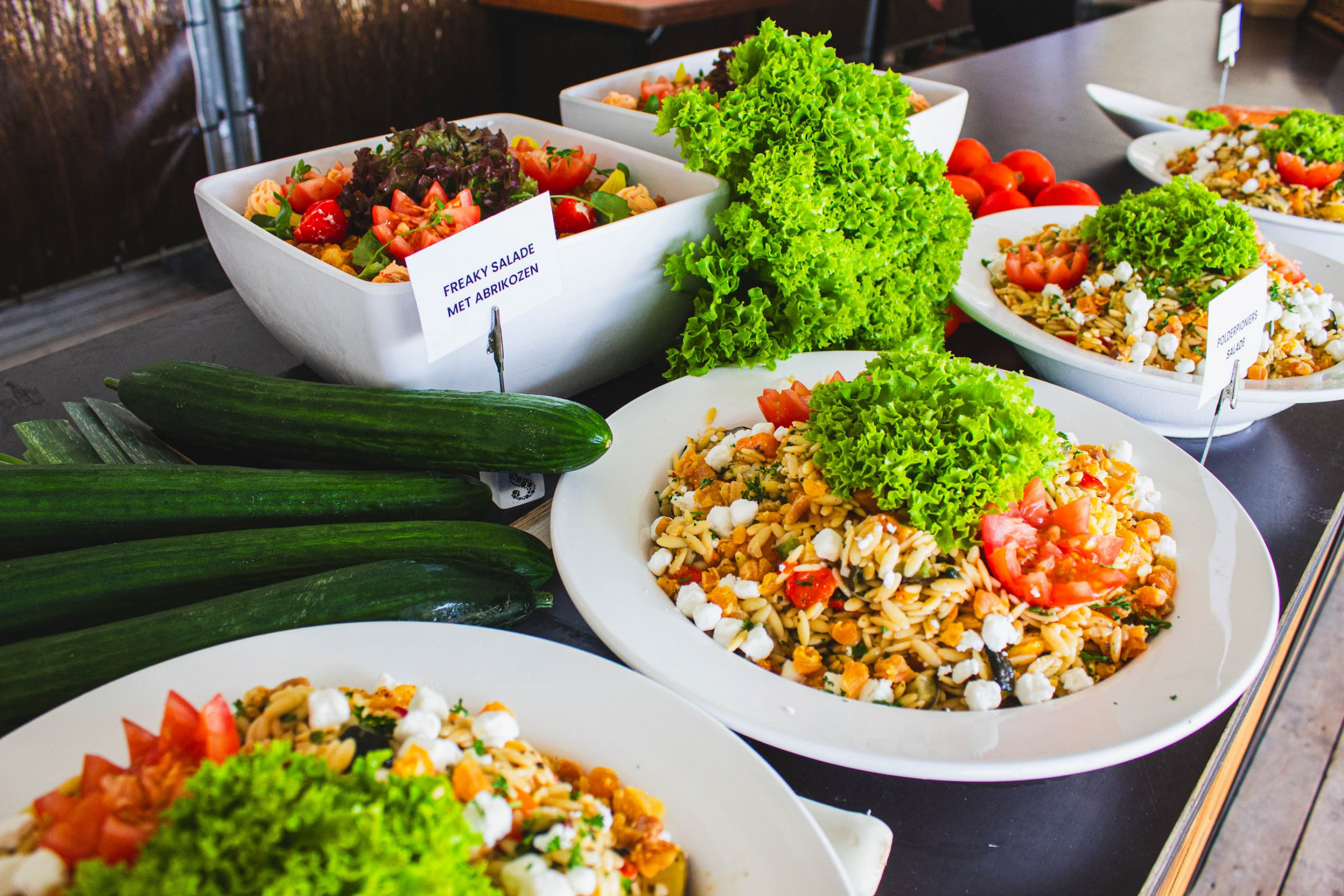 Komkommer | Tomaat | Feta | Rode ui | Kalamata olijven | Oreganodressing