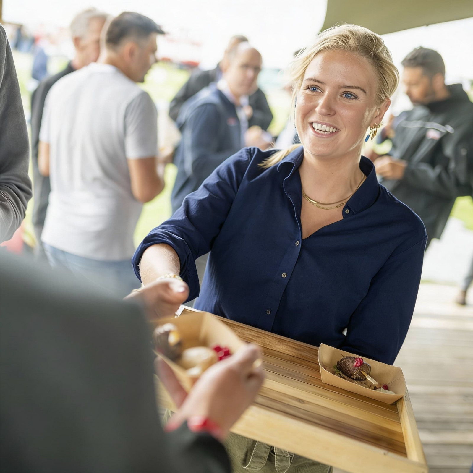Onze medewerkers serveren een afwisselend aanbod van verrassende hapjes die rondgaan, zodat er altijd iets te proeven is. Ideaal voor bijvoorbeeld een netwerkborrel of open dag: geen wachtrijen, wel volop keuze en alle ruimte om te blijven kletsen en genieten.
